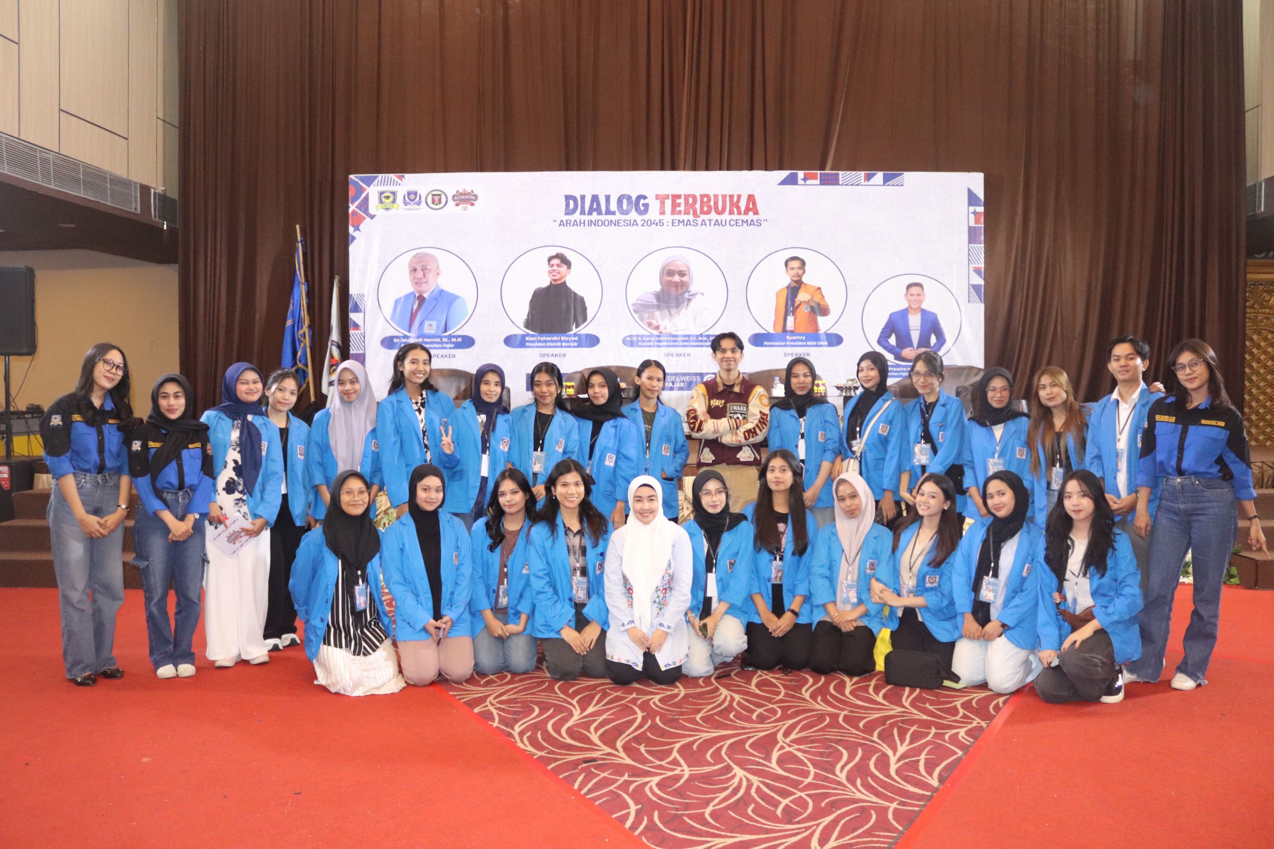 Makassar, 3 Juli 2025 – Rangkaian kegiatan Accounting Carnaval 2025 Universitas Fajar (UNIFA) memasuki hari kedua dengan menghadirkan sesi Dialog Terbuka bertema "Arah Indonesia 2045: Emas atau Cemas?" yang digelar di kampus UNIFA. Kegiatan ini diharapkan menjadi ruang diskusi kritis yang membuka wawasan mahasiswa terhadap isu-isu strategis nasional menuju Indonesia Emas 2045.