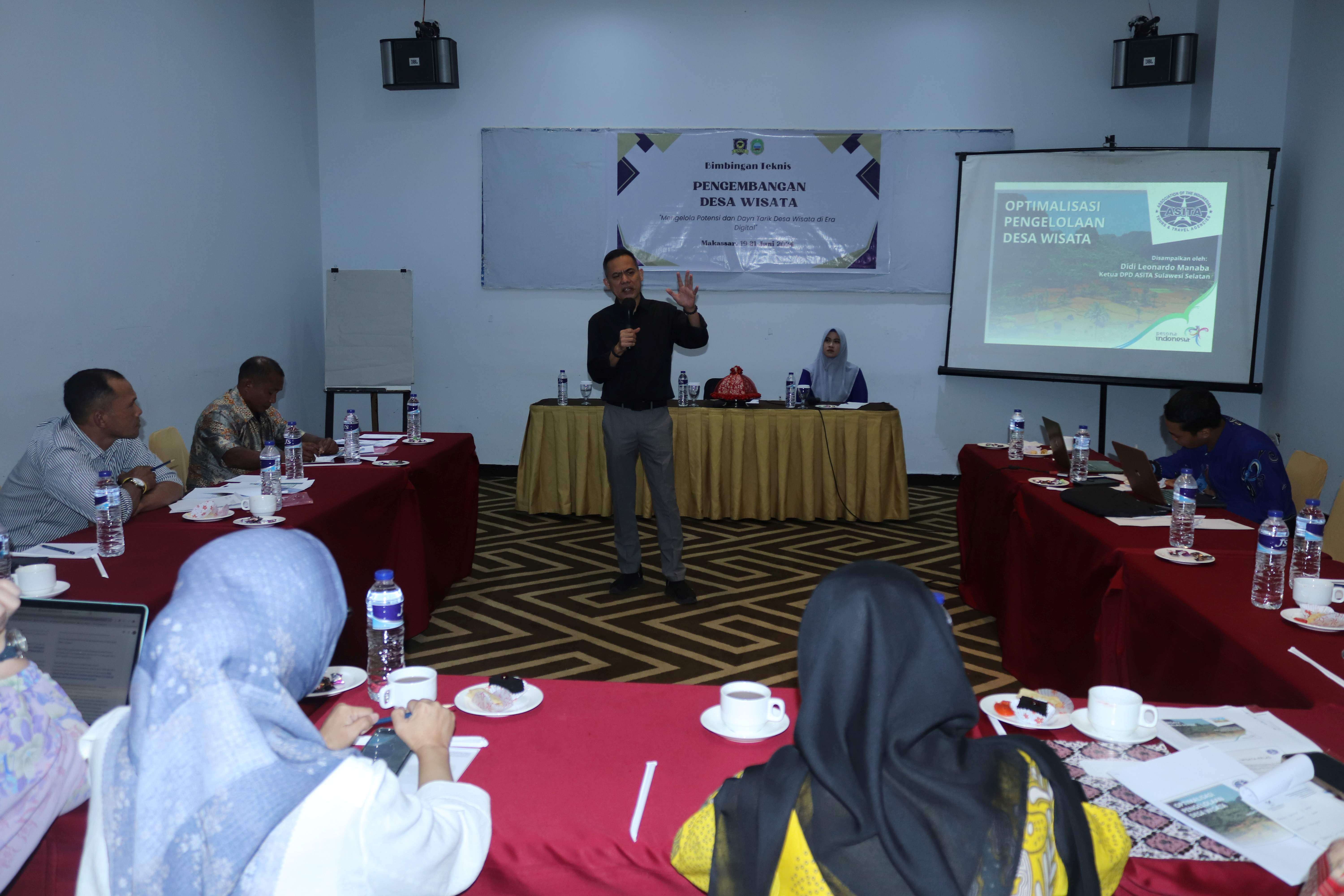 Bimtek ini menghadirkan sejumlah pemateri yang kompeten di bidang pengembangan desa wisata, yaitu Nasrullah S.ST.Par, M.Sc yang membawakan materi tentang Pengembangan dan Perencanaan Desa Wisata, Didi Leonardo Manaba selaku Ketua DPD ASITA Sulsel sekaligus Dewan Juri Anugerah Desa Wisata Indonesia (ADWI 2023) dengan materi Optimalisasi Pengelolaan Desa Wisata, serta Dr. Nur Alim Djalil, S.Sos., M.I.Kom yang menyampaikan materi Promosi Digital Desa Wisata.