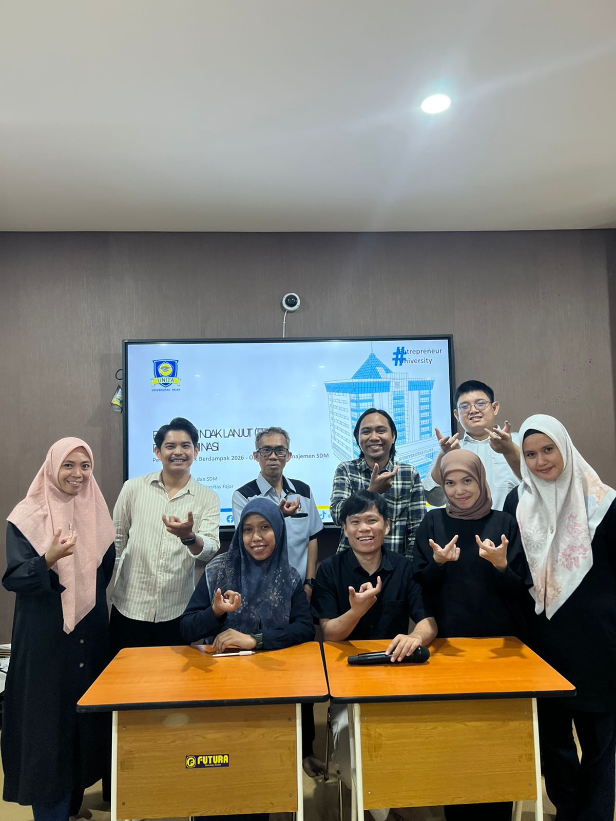 Kegiatan ini diikuti oleh seluruh tenaga kependidikan di lingkungan UNIFA bertujuan untuk mentransformasikan pengetahuan dan pengalaman yang telah diperoleh dari program tendik berdampak ke dalam praktik nyata khususnya pada bidang SDM. Materi dibawakan oleh Amir, S.H.Int., M.I.Kom selaku tendik yang di delegasikan Universitas Fajar untuk mengikuti kegiatan tendik berdampak 2026. Melalui RTL, peserta diharapkan mampu Menyusun langkah-langkah konkret yang terukur dalam meningkatkan efektivitas kerja, pelayanan administrasi serta pengelolaan sumber daya manusia yang lebih modern dan responsive terhadap tantangan zaman.