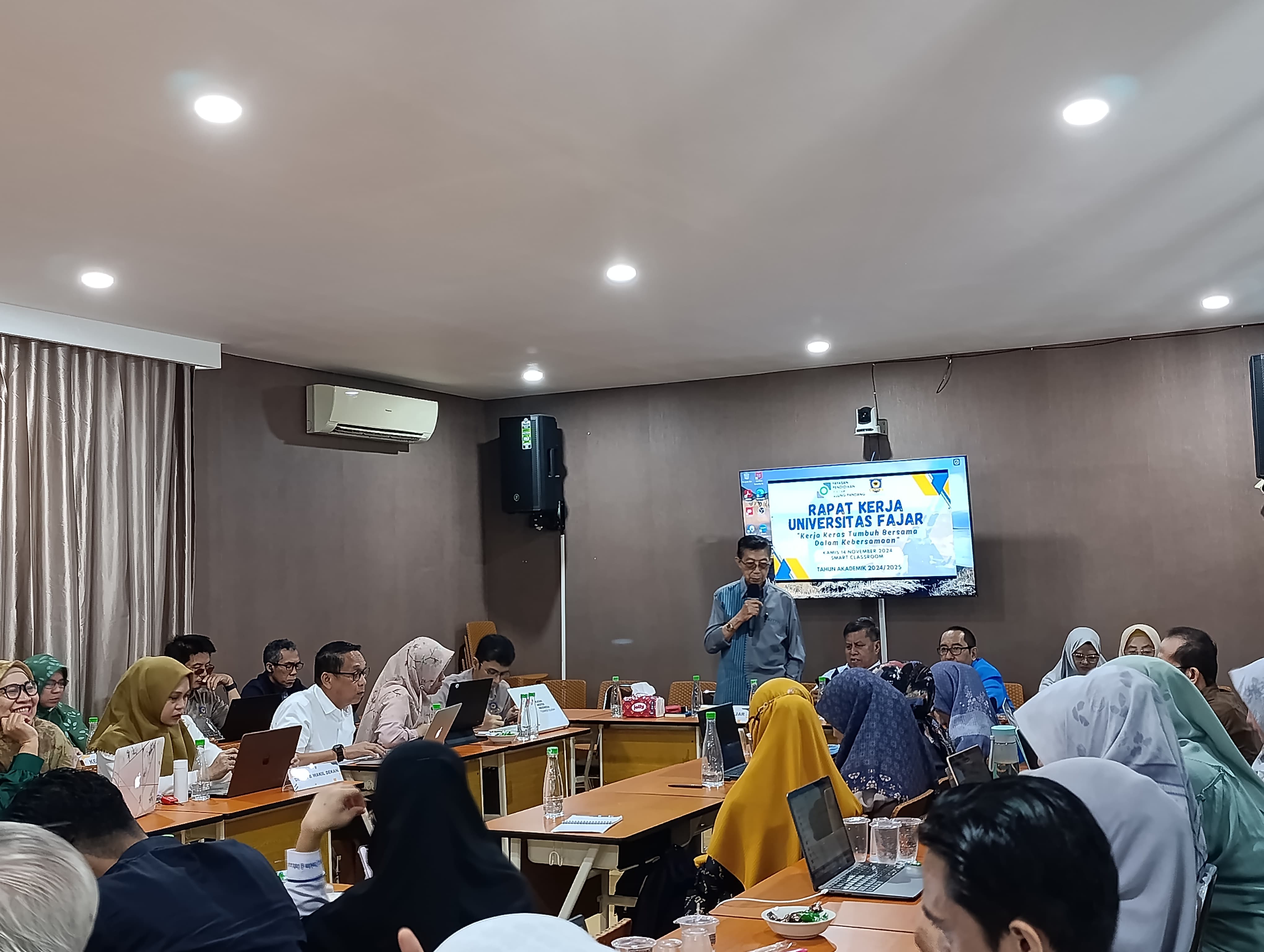 UNIVERSITAS FAJAR - Kamis, 14 November 2024 – Universitas Fajar sukses menggelar Rapat Kerja (Raker) Tahun Akademik 2024-2025 dengan tema *"Kerja Keras Tumbuh Bersama dalam Kebersamaan"*. Kegiatan yang berlangsung di Smart Classroom ini dihadiri oleh pihak Yayasan dan pimpinan Universitas Fajar, mulai dari Rektor, Deputi Rektor, Dekan, para Kepala Program Studi (Kaprodi), serta Kepala Lembaga dan Unit di lingkungan Universitas Fajar.