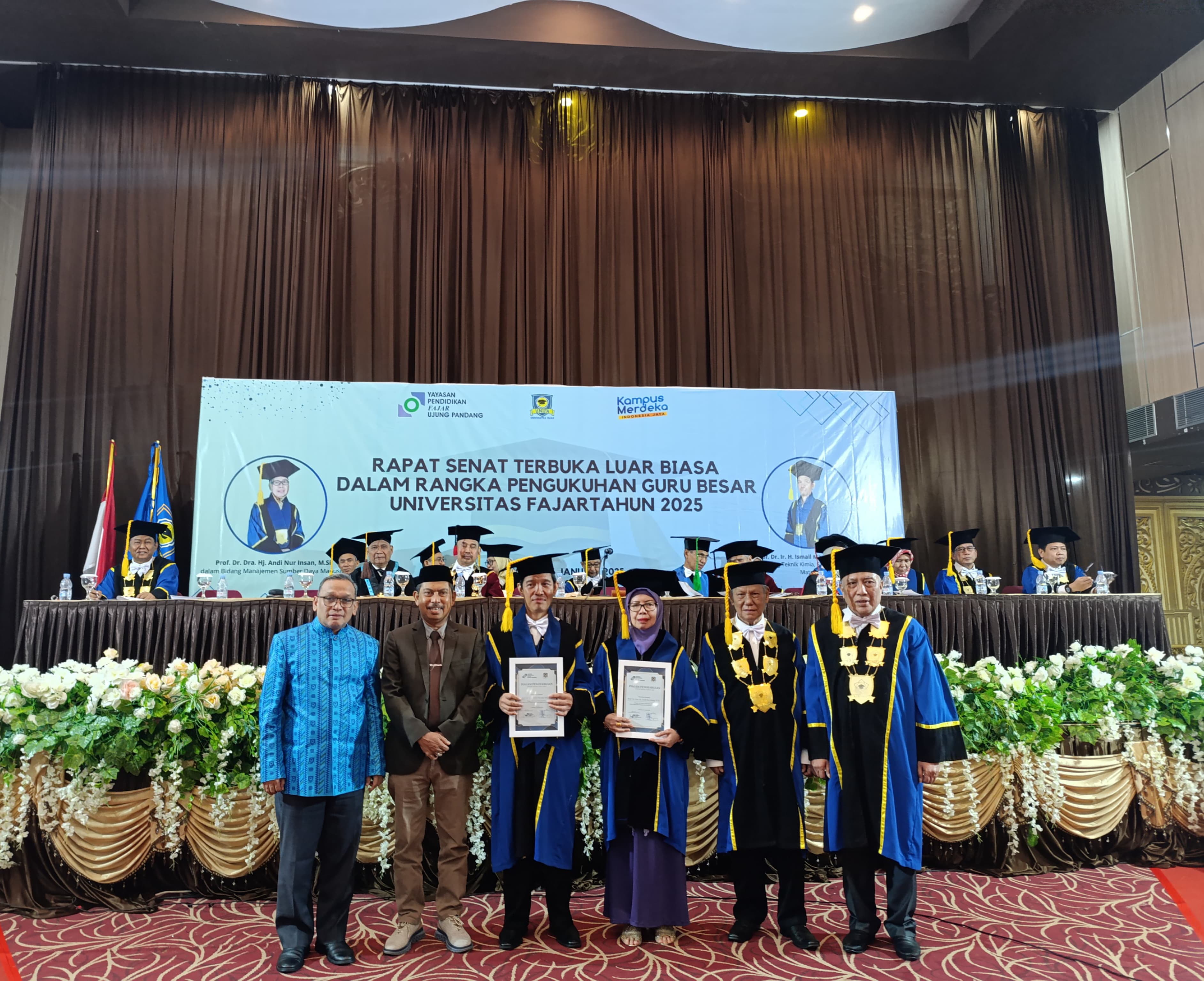 Pada Kamis, 16 Januari 2025, Universitas Fajar (UNIFA) menggelar Rapat Senat Terbuka Luar Biasa dalam rangka pengukuhan Guru Besar. Dalam acara yang berlangsung di Ballroom Edelweiss UNIFA tersebut, dua tokoh yang telah memberikan dedikasi luar biasa dalam dunia pendidikan dan penelitian resmi dikukuhkan sebagai Guru Besar. Mereka adalah Prof. Dr. Dra. Hj. Andi Nur Insan, M.Si., yang ahli dalam bidang Manajemen Sumber Daya Manusia, serta Prof. Dr. Ir. H. Ismail Marzuki, S.Si., M.Si., yang berkontribusi besar dalam bidang Teknik Kimia, Sains Bahan, dan Ilmu Material.