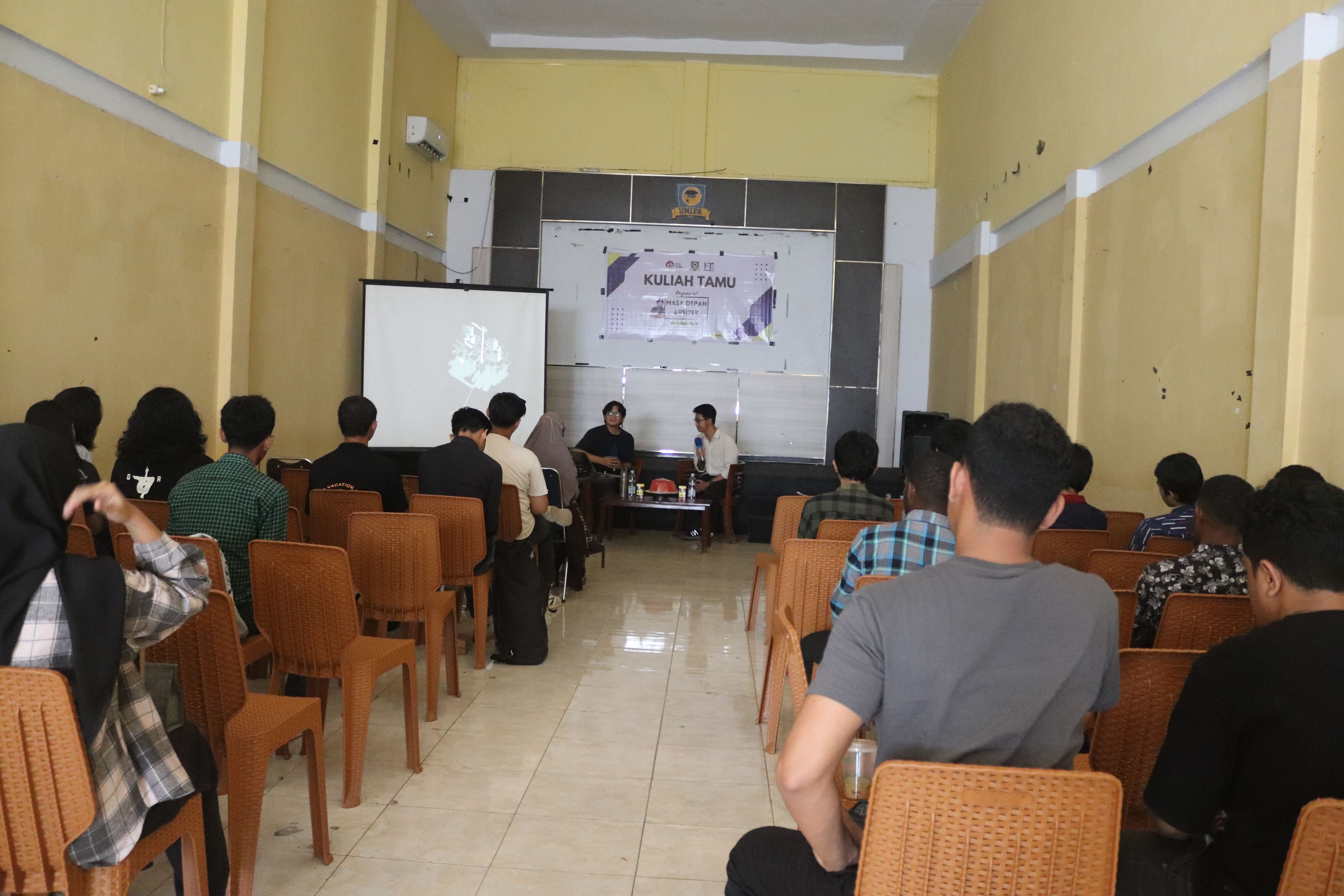 UNIVERSITAS FAJAR - Prodi Arsitektur Universitas Fajar sukses menggelar kuliah tamu pada Sabtu, 5 Oktober 2024. Acara ini dihadiri tidak hanya oleh mahasiswa Universitas Fajar, tetapi juga mahasiswa dari kampus-kampus lain diantara Mahasiswa dari Universitas Negeri Makassar yang tertarik mengikuti materi yang dibawakan oleh Ariko Andikabana, Sekjen Ikatan Arsitek Indonesia (IAI).