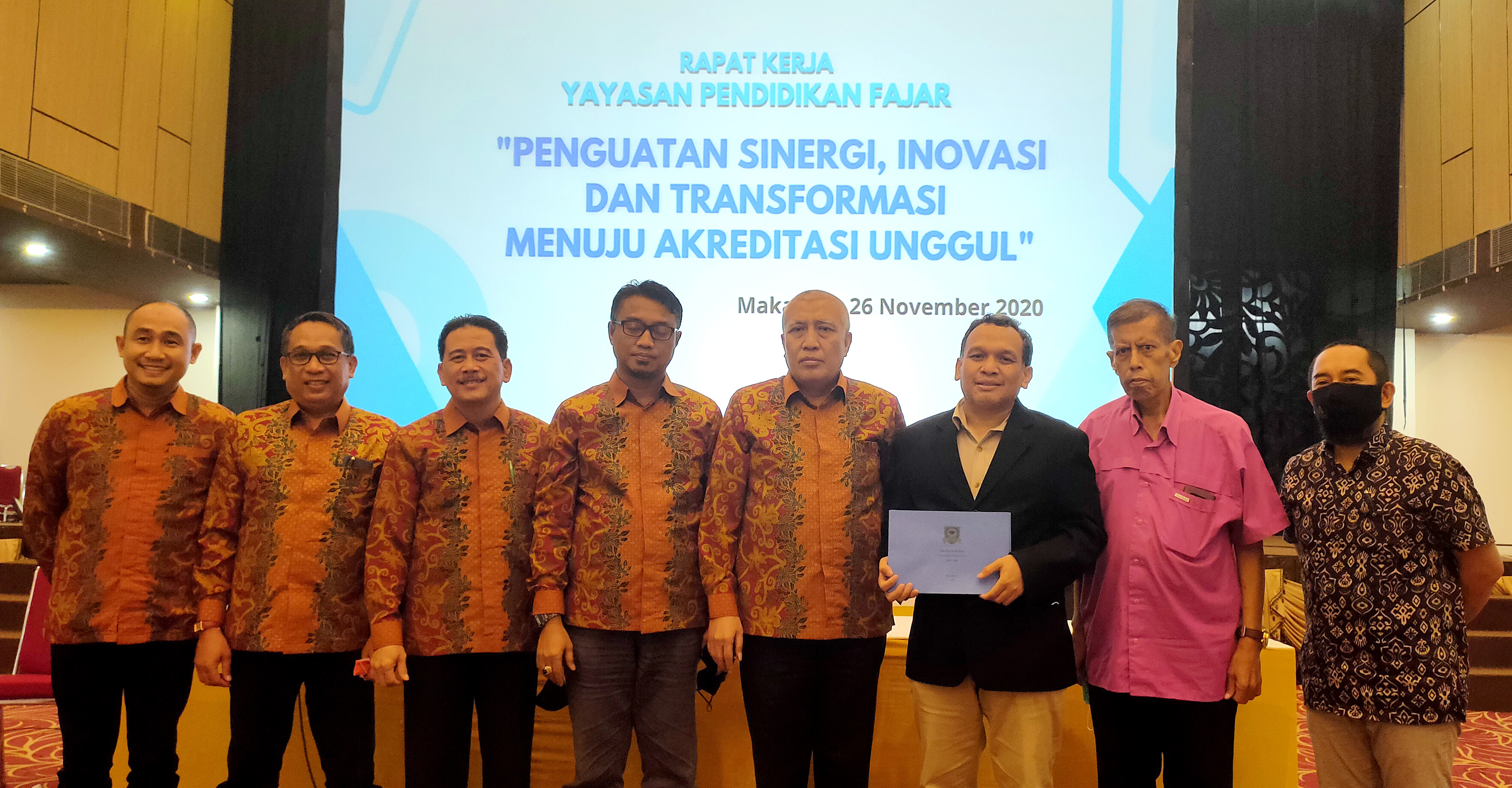 YAYASAN Pendidikan Fajar Ujungpandang (YPFUP) menggelar Rapat Kerja bersama tiga perguruan tinggi yang dikelolanya, Universitas Fajar (Unifa), Institut Bisnis dan Keuangan (IBK) Nitro, dan Politeknik New Surabaya College (NSC). Raker yang diikuti dekan, ketua prodi, serta staf pengajar yang dibawahi YPFUP ini digelar di Ballroom Edelweis, Kamis (26/11/2020).